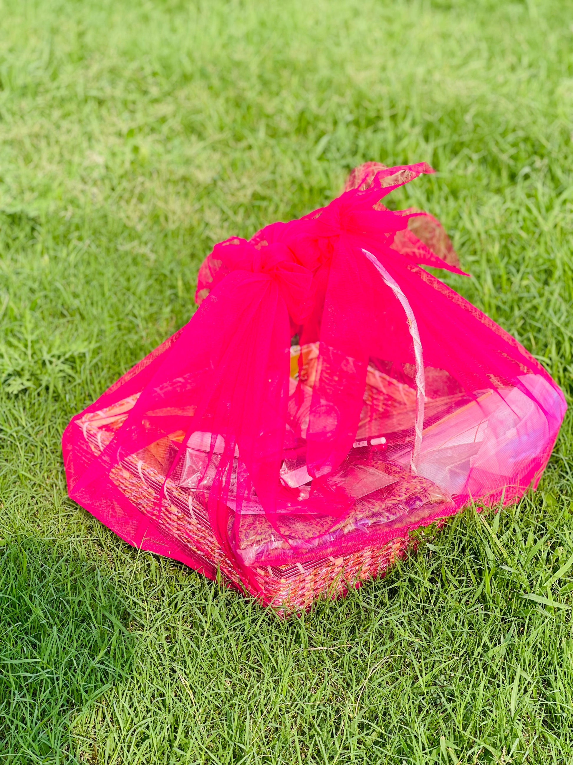 Make her feel truly special with this exclusive branded gift basket, carefully curated with top-tier fashion, fragrance, beauty, and sweetness. Ideal for any grand celebration — this luxurious basket is the perfect blend of elegance, love, and thoughtful gifting.